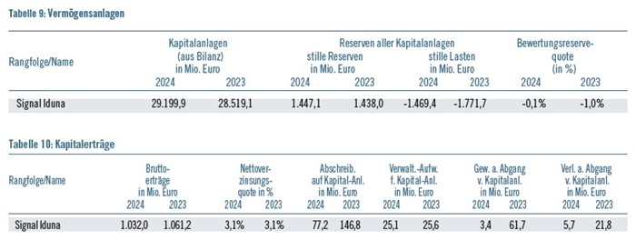 1. Dezember 2025Im PKV-Report 2024 (ZfV 10/2025) hat die Signal Iduna Krankenversicherung bei den Angaben zu den Vermögensanlagen und Kapitalerträgen irrtümlicherweise falsche Zahlen gemeldet. Die korrekten Angaben finden Sie in den beiden Tabellen unten.
